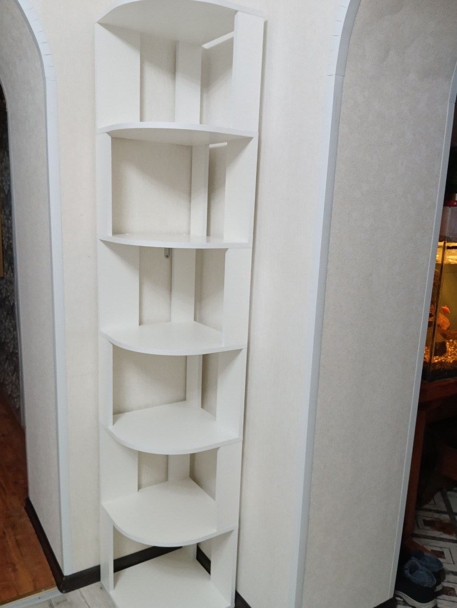 Брали стеллаж как дополнение к шкафу — встал идеально, как будто так и задумано. Смотрится аккуратно, не утяжеляет комнату. Полки удобные, расставили книги, декор и мелочи, которые раньше просто лежали без места. Понравилось, что угловой — пространство используется максимально, а визуально комната стала даже просторнее. Собрали без проблем, всё ровно, ничего не шатается. Вживую выглядит лучше, чем ожидали.