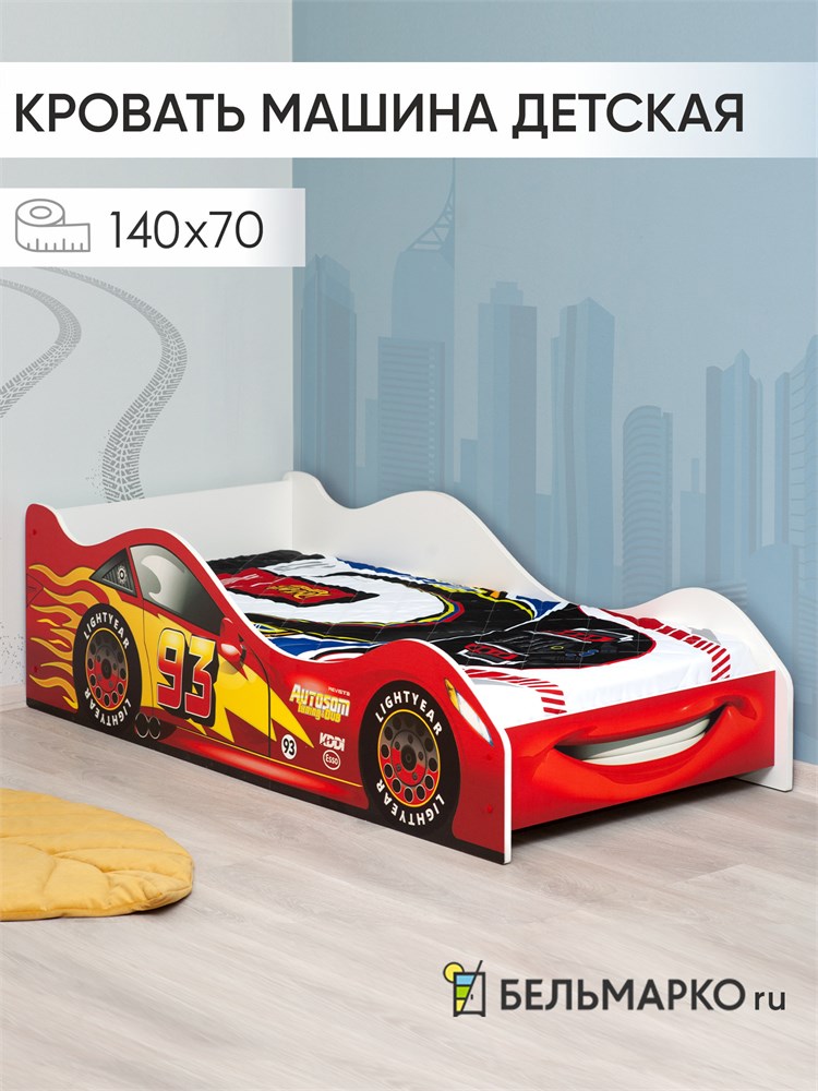 Кровать машина изготовлена из экологичного и простого в уходе ЛДСП, имеет прочное ортопедическое основание из 12 лат и выдерживает нагрузку до 200 кг. Все углы закруглены, края покрыты кромкой, что обеспечивает безопасность ребёнка во время игры.